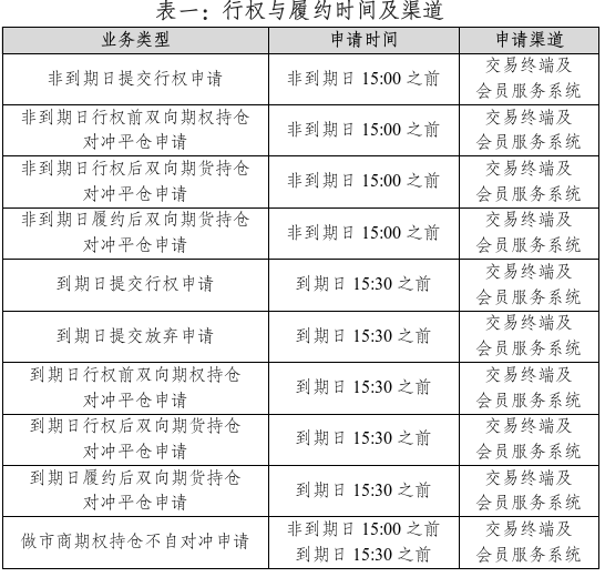 胶版印刷纸期权为美式期权,客户办理行权、放弃行权等业务的时间及渠道见下表: