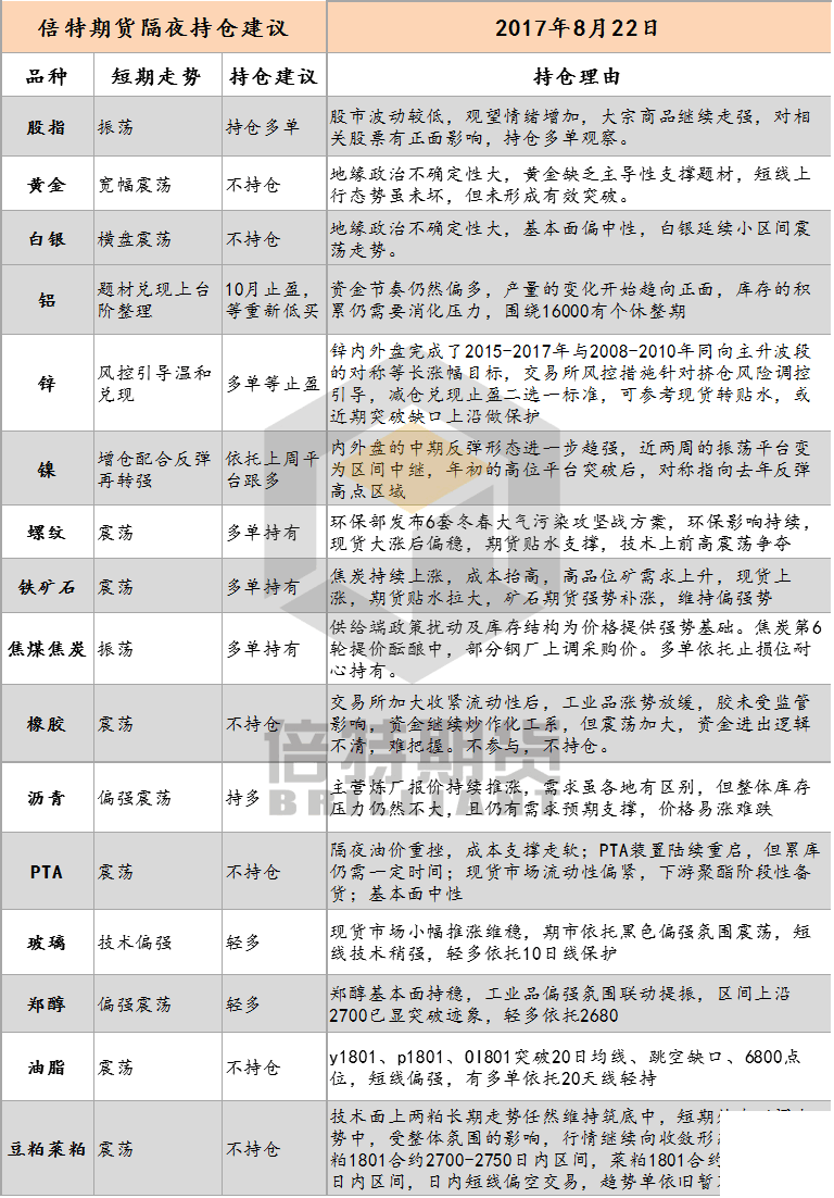 隔夜持仓建议0822